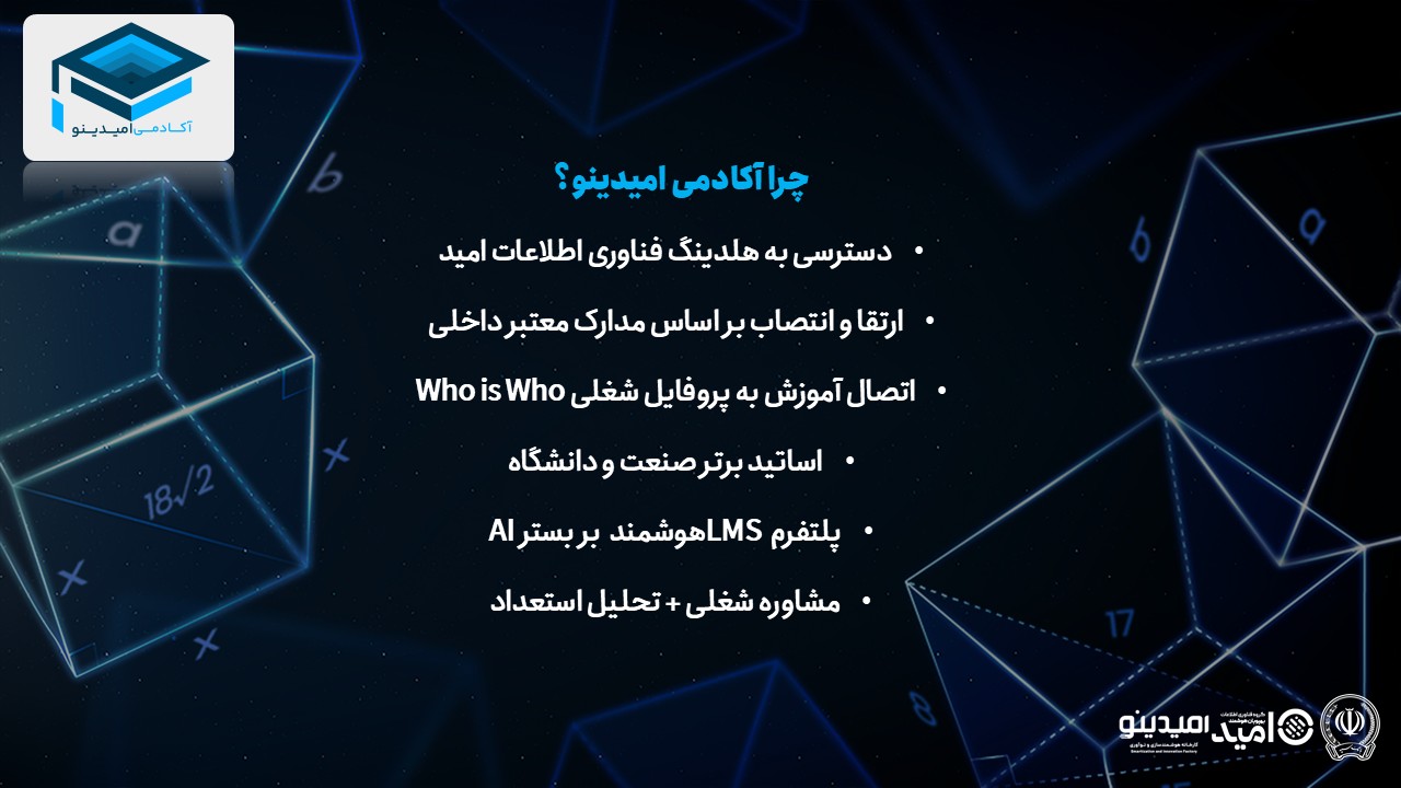 ایجاد «آکادمی امیدینو» در هلدینگ فناوری اطلاعات بهپویان هوشمند امید، اقدامی استراتژیک و مبتنی بر آینده‌نگری است که با هدف ارتقاء سرمایه انسانی، ایجاد هم‌افزایی میان دانش بانکی و تکنولوژیک، و تربیت نسل جدیدی از متخصصان چابک و توانمند در حوزه بانکداری هوشمند طراحی شده است. این آکادمی می‌تواند با بهره‌گیری از مدرسان مجرب، همکاری با دانشگاه‌ها و نهادهای معتبر آموزشی داخلی و بین‌المللی، و طراحی مسیرهای یادگیری هدفمند، به مرکزی برای انتقال دانش نوین، تولید محتوای تخصصی، توسعه مهارت‌های کاربردی، و توانمندسازی کارکنان بانک و شرکت‌های تابعه تبدیل شود.